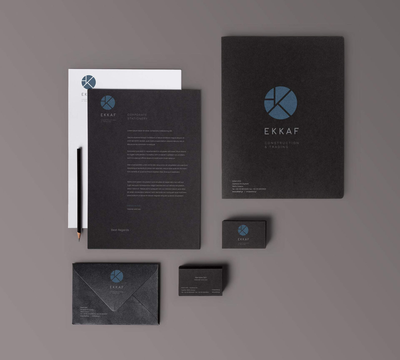 Attempting to capture the highly standards of the company we design a monogram from simple lines and within a circle visualizes content and container. The project was quite energising. It is always a wonderful experience to work for a client who trusts you and allows you to do what you are capable of doing. The staff who participated in the project were all professional, responsible, thoughtful and fun.